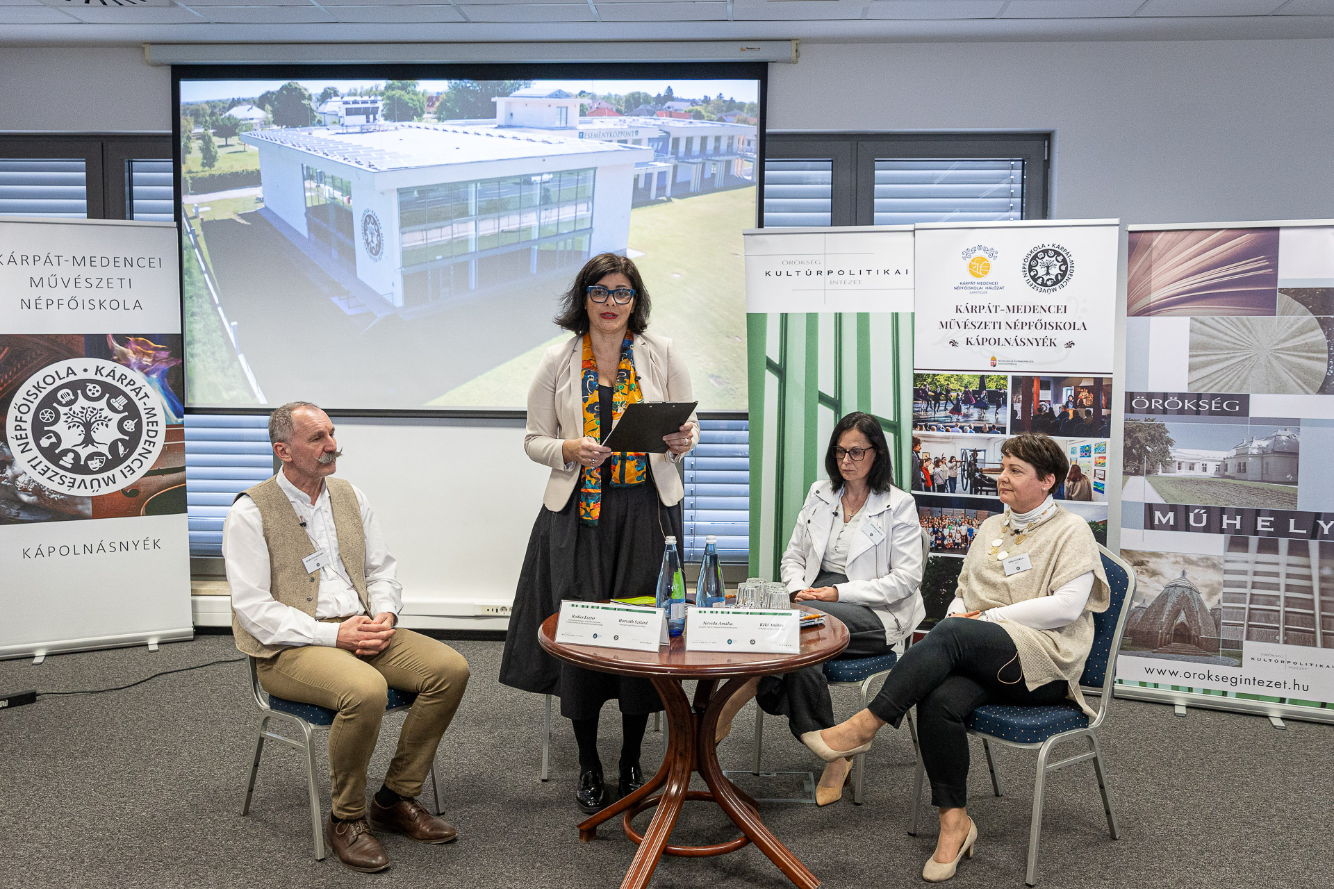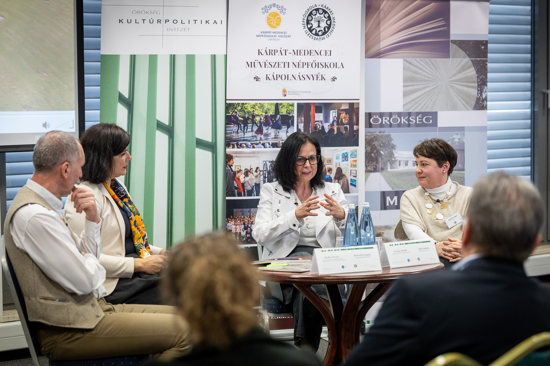 A nap második felében kerekasztal-beszélgetés zajlott, melynem keretében mutatta be „Akarsz-e játszani mindent, mi élet?” című módszertani kiadványát a Művészeti Népfőiskola. A kiadvány új perspektívákat nyit a pedagógiai gyakorlatban. Rodics Eszter elnök asszony kiemelte: meggyőződése, hogy ha nem vagyunk nyitottak a változásra és a változtatásra, mi magunk fordulunk el a fiatalabb generációktól, és fosztjuk meg őket attól, ami születésüktől fogva jár nekik: a kultúrájuktól. A felelősség ezért nem csupán egy-egy program minőségében jelenik meg, hanem gondolkodásunk és hozzáállásunk folyamatos megújításában is. Az Örökség Műhely „Generációk párbeszéde a közösségi tanulásban” kerekasztal nem finom megfogalmazásokkal operált, hanem egyértelmű diagnózist adott: a fiatalokkal való kapcsolat megbomlott, és ennek egyik fő terepe a kontrollálatlan képernyőhasználat és a kiüresedett közösségi jelenlét.