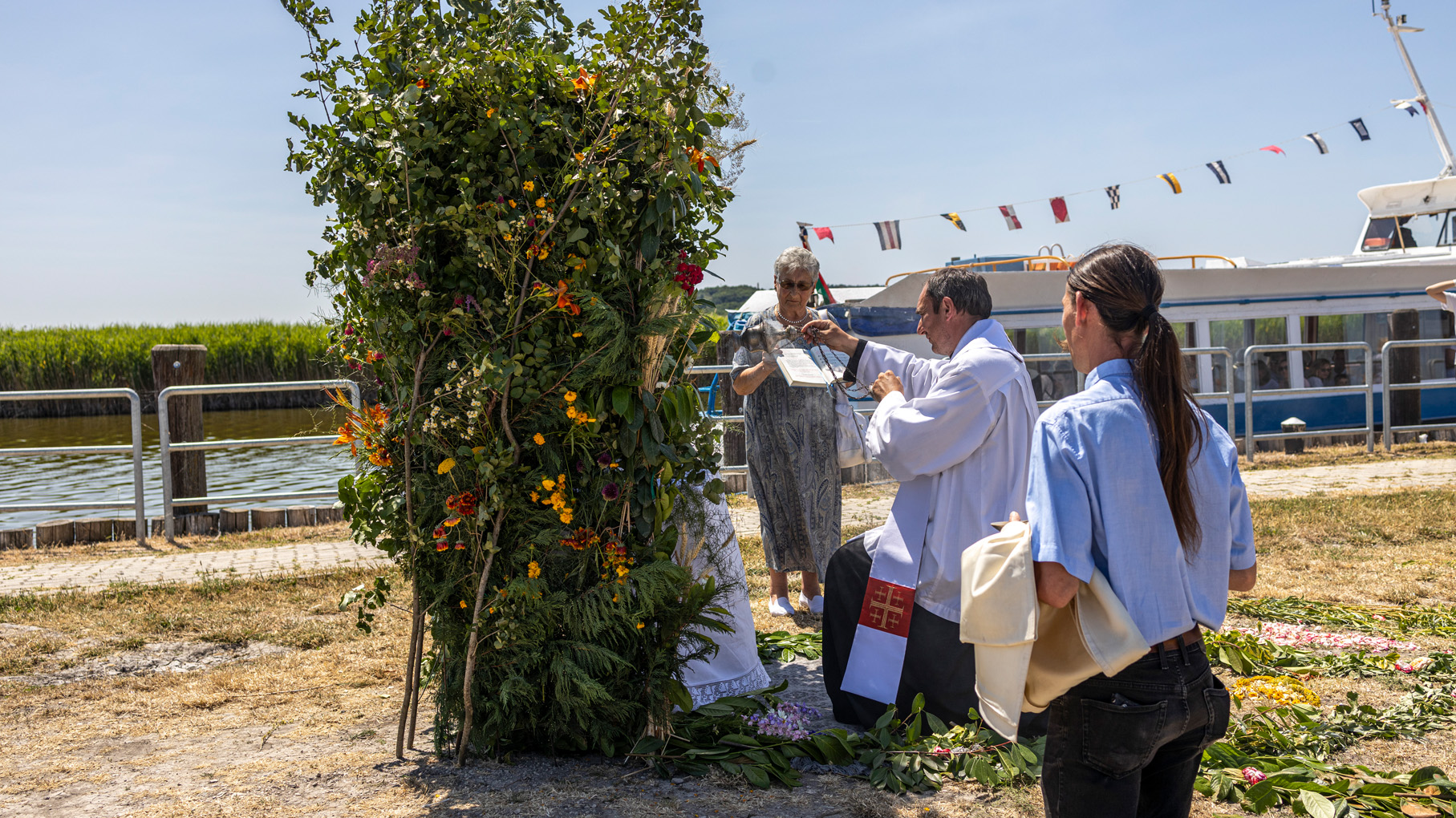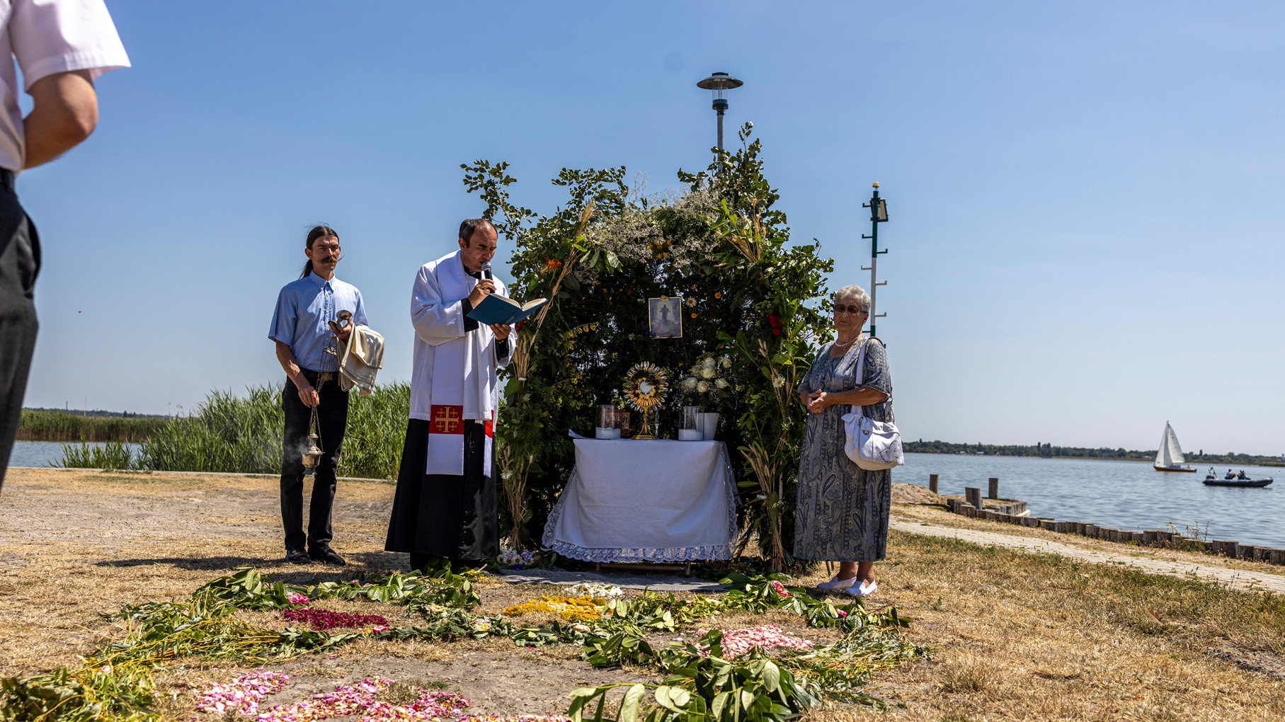 Az Úrnapja a katolikus keresztény egyház egyik legszebb és legbensőségesebb ünnepe. Az Úr Szent Testének és Szent Vérének főünnepe, vagyis az eucharisztia, a szentáldozás csodájának megünneplése. A hagyomány szerint ezen a napon a hívek körmenetben vonulnak végig a településen: az Oltáriszentséget – az ostyában jelen lévő Krisztust – viszik körbe, virágokkal díszített oltároknál és virágszőnyegekkel borított útvonalon. Az úrnapi körmenet a hit, a közösség és a hála közös megvallása, amelyben a természet és az emberi szépség is az ünnep részévé válik. Ezt a mély hagyományt új formában, a Velencei-tó vizén ünnepelte meg 2025 nyarán a helyi római katolikus plébánia. Az ötlet különleges módon született: egy hívő emlékeztette Récsei Norbert atyát az 1938-as budapesti Eucharisztikus Kongresszusra, amikor a Dunán tartottak körmenetet. Felmerült a kérdés – miért ne lehetne hasonlóan felemelő módon, a Velencei-tó hullámain is megünnepelni az Úrnapját?