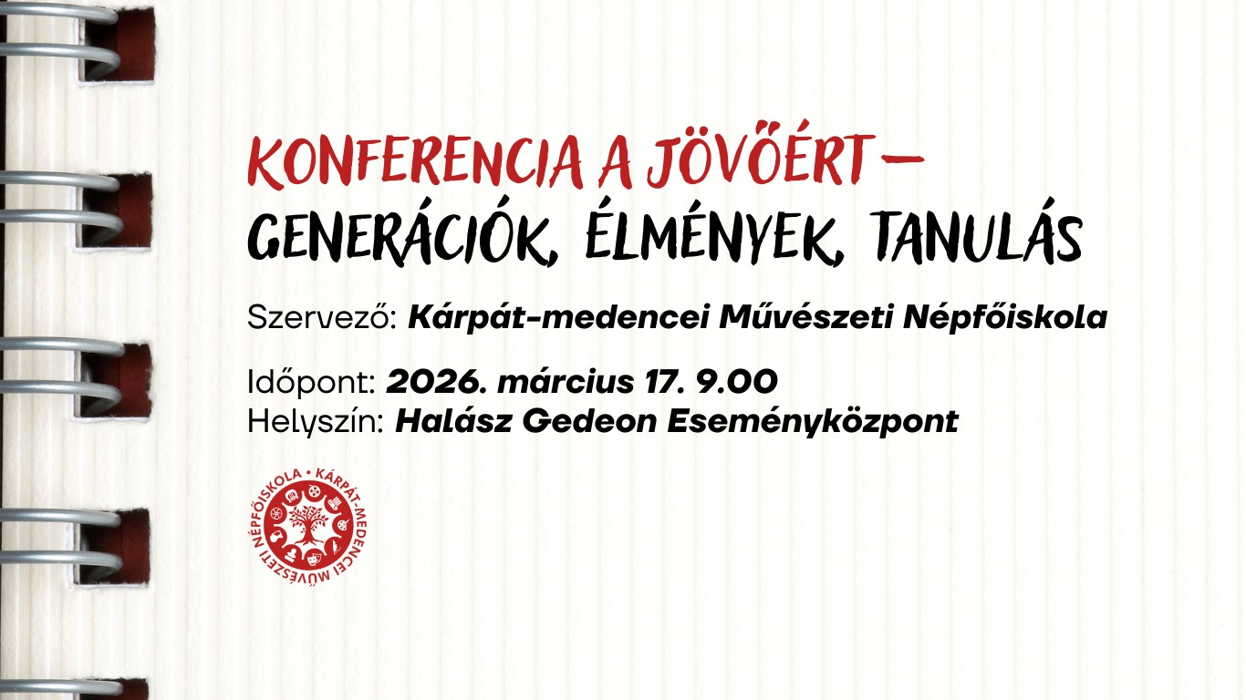 2026. március 17-én a Halász Gedeon Eseményközpontban a Kárpát-medencei Művészeti Népfőiskola olyan szakmai találkozót hív életre, amely a tanulás jövőjéről szól – élményen, művészeten és generációs párbeszéden keresztül.