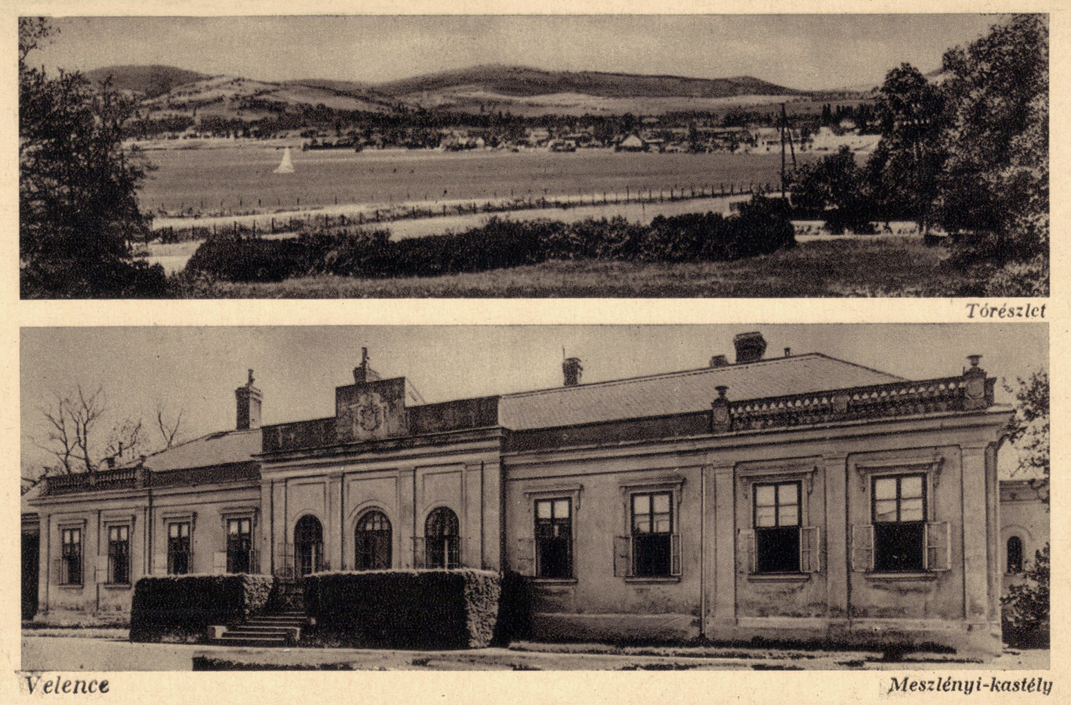 A rövid áttekintés után lássuk, hogyan jelent meg a Meszleny-kastély a XX. század első felében a képeslapokon. E lapokat a korai időszakban a család rendelte meg a képeslapkiadóktól, hogy saját és vendégei levelezési igényeit kielégítse, de kiadóként hamarosan jelentkeztek az élelmes (elsősorban kápolnásnyéki) kereskedők is, akik a lassanként növekvő idegenforgalom, az üdülők keresletére építettek. A húszas évektől már a nagy képeslapkiadók is fantáziát láttak a velencei lapokban, üzletkötőik keresték fel a környékbeli vendéglőket, szatócsüzleteket, dohánytőzsdéket a helyi képekből összeállított mintakollekciójukkal, amiből a kereskedők kis mennyiséget, akár 1-2 tucatot is rendelhettek. Az általános levelezési kultúra, a gyors, pontos és megbízható posta és a tömegessé vált képeslap-gyűjtés jó üzletté tette e lapok kiadását és árusítását. A fennmaradt lapok pedig visszaröpíthetnek bennünket az egy évszázaddal korábbi világba.