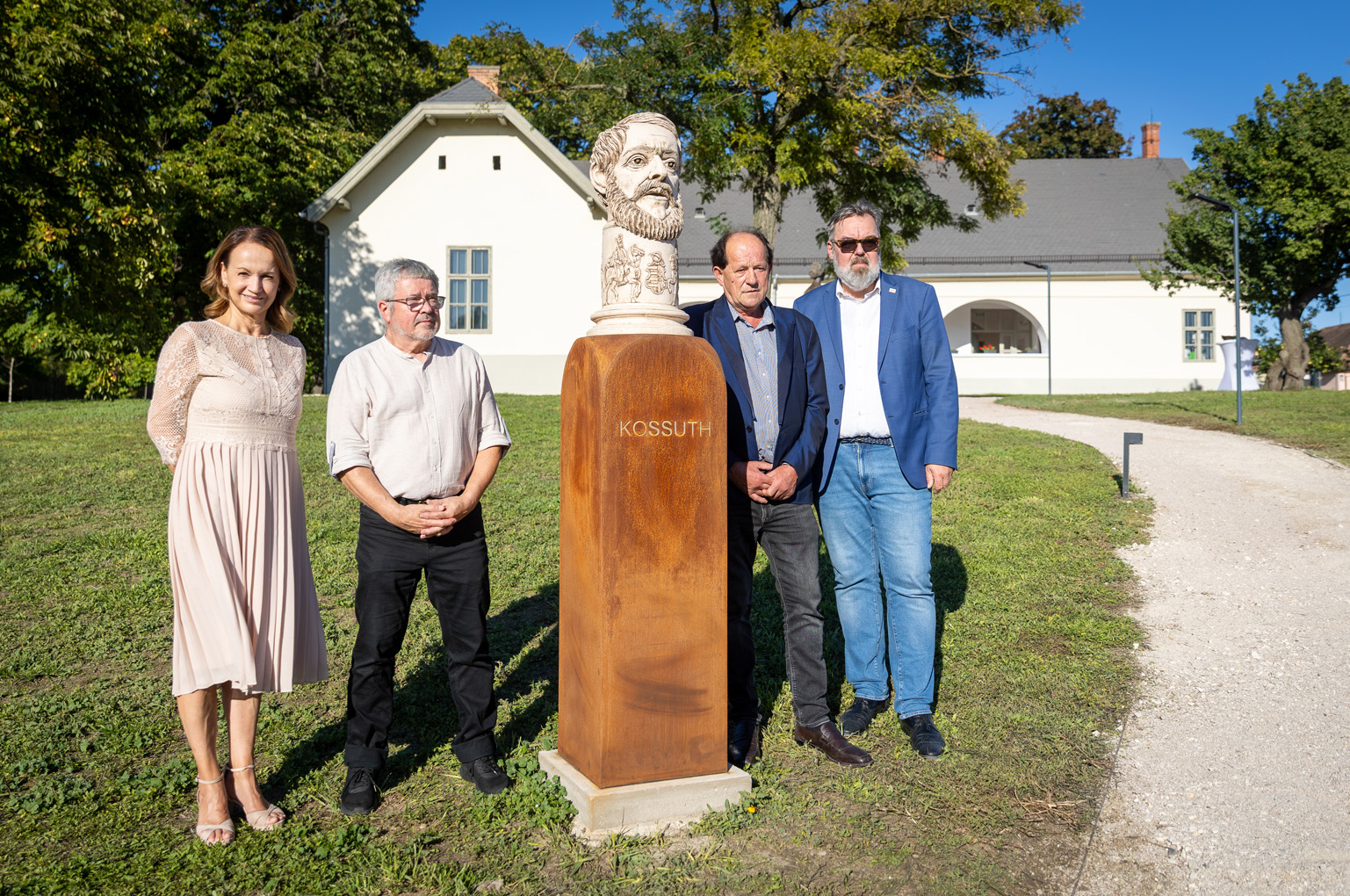 Szeptember 19-e napfényes őszi délután volt Kápolnásnyéken – e napon emlékeztünk Kossuth Lajos születésnapjára, még ha a dátum valójában kérdéses is (lásd keretes írásunkat). A magyar szabadság egyik legnagyobb alakjának szobrát éppen ezért ezen a napon avatták a Vörösmarty Emlékház parkjában.